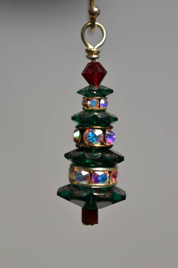 The quest to make each ornament better than the last has opened a floodgate of ideas. The sombrero ornament is still revered by the recipient as they have never seen anything like it anywhere. I have a friend who mentioned the possibility of hanging a single earring within the ornament. A fast review of various crystal vendors like Fire Mountain Gem and Beads showed they typically have web sites showing customer ideas. From these sites I realized that the cost of various gems, pearls and crystals was very reasonable. I quickly realized the customers were thrilled when they found out that I use Swarovski elements in my ornaments. This bling has a unique appeal to women that asked if I could make them earrings to match the item within the ornament.